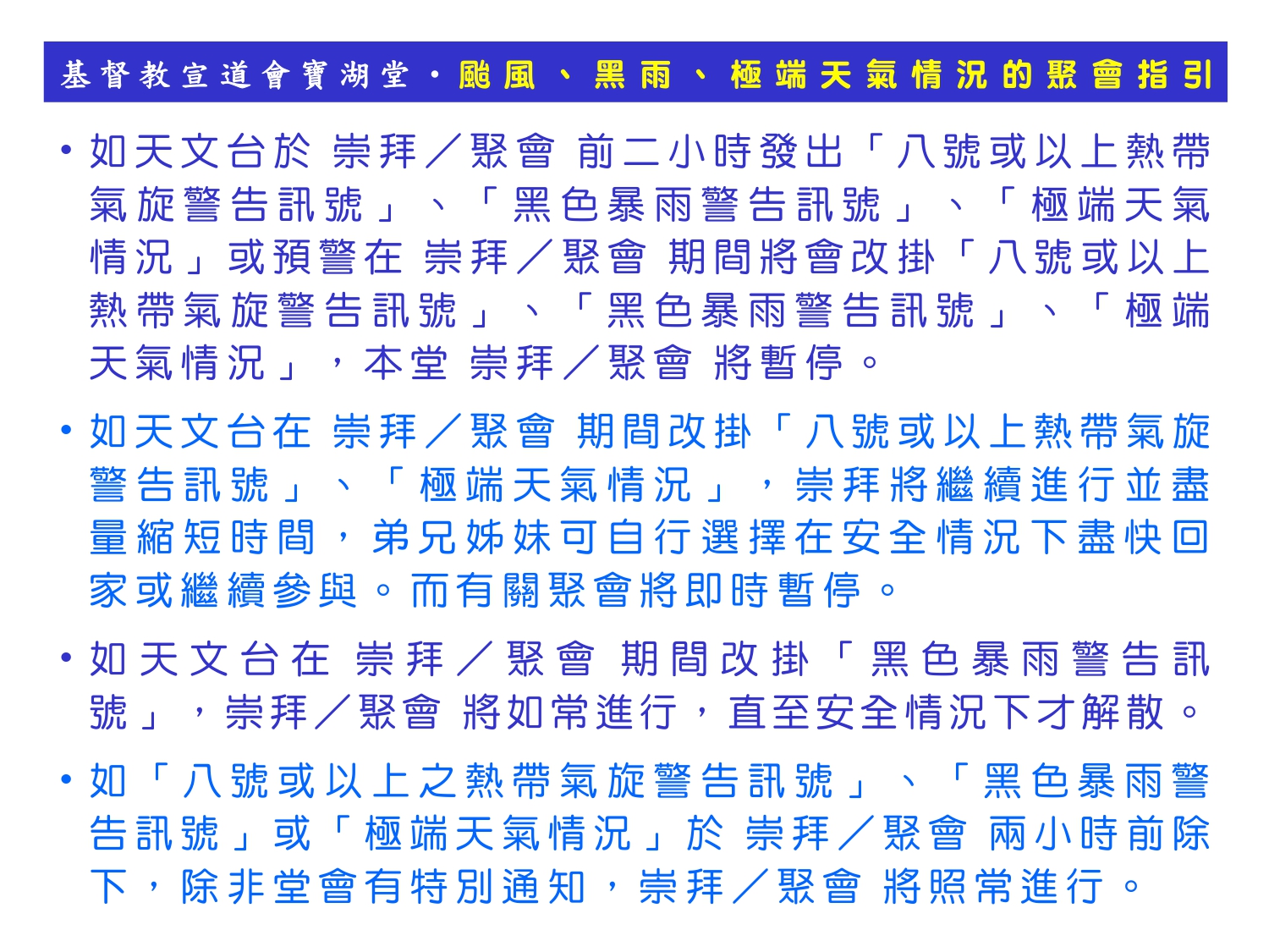 颱風、黑雨、極端天氣情況的聚會指引